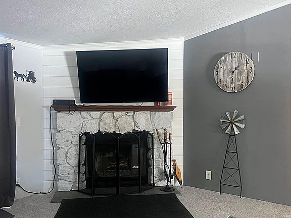 Discover your own private retreat with this 3 bedroom, 2 bath home situated on 2 acres +/- of picturesque land. The open floorplan provides a seamless flow, while the covered front porch invites you to sit back and enjoy the surrounding countryside.  Inside, the home boasts newer carpet, an updated Master Suite with a luxurious walk-in shower, and spacious living areas perfect for entertaining or relaxing. Step outside to the newer rear deck, ideal for hosting gatherings or enjoying the beauty of the outdoors.  This property is equipped with a heated detached 2-car garage and covered RV parking with water and electric hookups, offering plenty of space for all your vehicles, hobbies, and projects. Stay connected with high-speed fiber internet, and enjoy the convenience of modern living in a country setting.  This home has it all—space, comfort, and functionality.