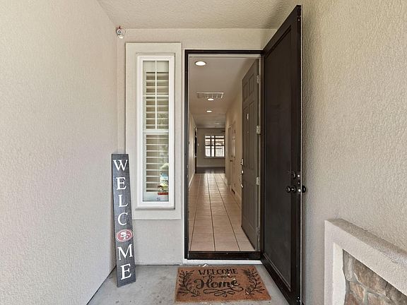 Freshly painted! This inviting single-story home boasts a fantastic layout, centered around a bright and airy open great room. The expansive kitchen island is perfect for gathering, while natural light floods the space. Retreat to the private primary suite, complete with a roomy walk-in closet and a relaxing soaking tub, thoughtfully separated from the additional bedrooms. Plantation shutters adorn most windows, including the slider that opens to a wonderful covered patio - ideal for outdoor enjoyment. Benefit from built-in energy savings with the already installed leased solar system and recently updated HVAC system. Enjoy effortless access to Lodi, Highways 99 and I-5, and the heart of Stockton, conveniently located near Eight Mile and Marlette.