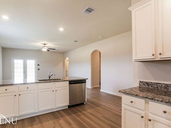 This home features luxury vinyl plank flooring, granite countertops, and stainless steel appliances. Throughout the rest of the space, you'll notice ceiling fans, abundant natural light, and an open-concept layout connecting the living, dining, and kitchen areas.