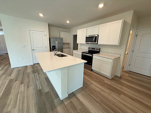 Attached two-car garageOpen-concept layoutSleek cabinetryModern kitchenAmple counter spaceFull appliance package