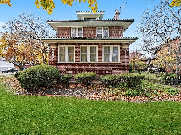 Welcome to this solid brick two-story corner property with a unique tile roof, located in Beverly, offering 5 bedrooms and 3.5 bathrooms, including one bathroom located in the basement. Move in, customize, and add value. Don't miss out on this opportunity. The main level features a spacious living room with a wood-burning fireplace, built-in shelving and cabinets, chair rail, and crown molding. The separate dining room includes a chandelier, chair rail, and crown molding. The kitchen area consists of a breakfast bar, a portable island, and an adjacent breakfast den. The home boasts both an inviting front enclosed porch and a rear enclosed porch, as well as an enclosed screened patio next to the garage. Additional features include a 2-car garage, a full basement, and generously sized living areas. Located conveniently near schools, shopping centers, public transportation (including bus and train), and recreational facilities, this property is part of an "estate sale" and is being sold "as-is".