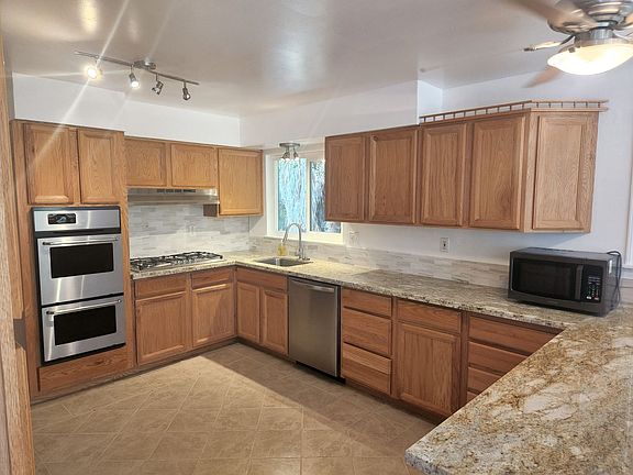 Enjoy beautifully set up kitchen with granite countertops and stainless steel appliances, breakfast bar and a bright dining area with surrounded with windows.
