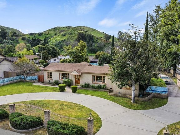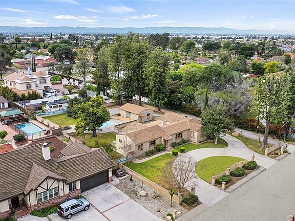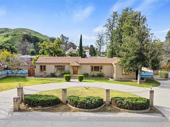 HUGE 20,051 SF. FT. LOT!!! Formal living room with brick fireplace for decorative use and beamed ceilings. Family room leads to dining area and kitchen with tile counters and breakfast bar - great for entertaining! Spacious back den sliding door access to backyard. Backyard with empty pool area, sports court and grassy yards. Detached garage with long driveway and lots of space for toys or RV!
