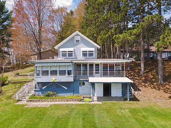 This charming 3 bedroom, 1-bath lakefront cottage sits on a spacious ¾ acre lot with 132 feet of shallow, sandy frontage; perfect for swimming and lakeside fun. Enjoy modern comforts with an updated kitchen and well, plus plenty of storage in the basement, which includes a large door for easy access and a dedicated fish cleaning station. A standout feature is the large 2-car pole barn, which includes a full bath, laundry area, workbench, and ample room for storing a pontoon and vehicle. Whether you're looking for a seasonal getaway or a new home site, this property has all the essentials. Dock is not included. Pontoon included in sale to get you going!