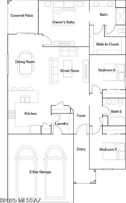 The Great Room, kitchen and dining room share an open floorplan in this single-level home, leading to a covered patio ideal for entertaining or relaxing. Off the foyer are two secondary bedrooms, providing a comfortable and private space for household members or overnight guests. The luxe owner's suite is situated at the back of the home, comprised of a restful bedroom, en-suite bathroom and walk-in closet. Our homes come with the Rinnai Tankless Water Heater, Post-Tension Foundation, Taexx built-in pest control system, Radiant barrier roof decking, 2'' Faux Wood Blinds and more!