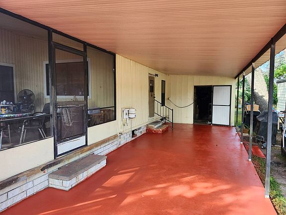 55+/2BD2BA/1064SQ/UPDATE KITCHEN/METAL ROOF-OVER/SCREEN LANAI Here is another one, very large rooms and at a very affordable price. This home offers a freshly painted drive, front deck with handicap ramp leading to the all screened front lanai. Make this one yours by putting your touches making it the way you want. Entering this home from the front lanai directly into the front den/office area open to the very large living room. The formal dining area complete with a built in china hutch is open to the kitchen and the living room and offers a side door entrance to the home from the back of the drive. The kitchen was remodeled some years back and granite counter tops were added. The hall leading to the bedrooms and main bath has another built in storage area with cabinets top and bottom with additional counter top. The main bath has been remodeled and offers the full tub/shower combination. The guest bedroom just off the main bath is queen sized for sure and offers a walk-in closet. The master is king sized, offers a walk-in closet and a remodeled en-suite offering the walk-in shower. Outside there is a laundry storage area with a huge workshop behind, talk about storage, if you are looking for that one on a budget with a huge workshop, come and see this one!! This home is located in the gated 55+ community Pleasant Living offering daily senior activities, a full operating clubhouse with kitchen, a fully screened year round swimming pool, work out area, pool tables, shuffleboard, horseshoes, and monthly evening entertainment. Pleasant living offers all amenities, trash pickup twice weekly, all for the reasonable monthly park fee of $891.00. Make your appointment to view today!