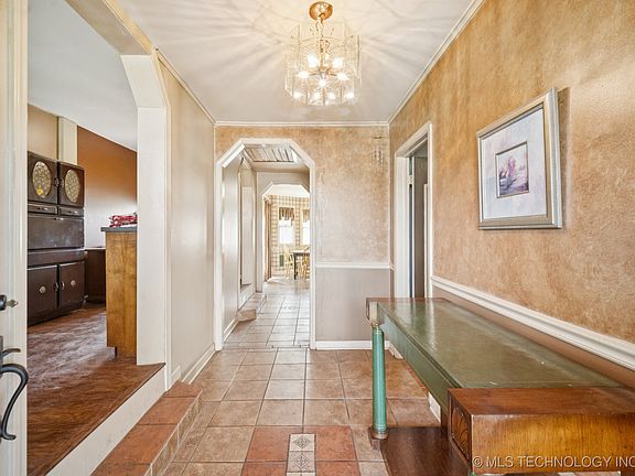 BROKEN ARROW PUBLIC SCHOOLS, 3 BEDROOMS, 2 FULL BATHROOMS, NO HOA, AND LAND OUTSIDE OF FLOOD ZONES! Inviting foyer off large covered porch. Country, eat-in kitchen with tons of counterspace and cabinets and exterior door access. Inside utility room with additional exterior access door. Split plan offers full hallway bathroom with shower and large bedroom to the south. On the north side, you'll find two additional bedrooms, a full bathroom, a massive great room with bay window, a flex room with exterior door access (could easily be second living area, office, or playroom), and an additional area that could be used as a formal living or additional flex space. Massive backyard with two sheds. This property needs updating and some TLC, but offers so much versatility. NEW ROOF - 2025.