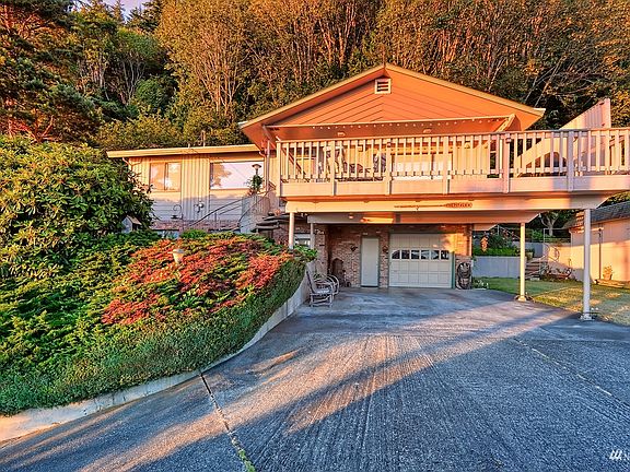 Imagine yourself enjoying the serenity and beauty of Chuckanut Bay, the San Juan Islands and Dot Island anytime you want from this wonderful home. The large covered deck will provide a year-round observation place and the same view can be enjoyed from the Living Room with a lovely stone incased wood burning fireplace, with your meals in the Oak floored Dining Room, and even the upgraded Kitchen. Downstairs is a large Family room with a fireplace, outside access, a bedroom and Full Bath. Outdoors is a beautifully landscaped yard, garden shed/kennel, a patio nestled against the wooded hillside and a stairway leading your way up to the Interurban Trail. There is also a well constructed detached carport that could be transformed for many uses.