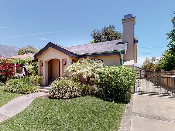 This charming Mediterranean inspired home is located on a quaint tree-lined street in Northeast Pasadena. Built in 1999 with all modern amenities, quality structure and many other upgrades added by present Owner. You are welcomed into a spacious open floor plan with a sizable living room, soaring ceilings, lots of natural light, a Venetian plastered floor to ceiling fireplace, a true statement of the art. Leading to a Chef's dream kitchen remodeled this year with Brazilian Quartzite counter tops and waterfalls, custom cabinetry, contemporary hardware, Stainless steel appliances, Italian flush White glass ceiling exhaust fan, linear ceiling diffusers, breakfast counter - adjacent to the dining area. An ample size family room with vaulted ceilings and French doors leading out to a covered patio equipped with fan, electrical and gas line. A private backyard with custom-built Pavilion (whitewashed tongue and groove ceiling) and raised garden beds is the place to enjoy California's summer evenings and views of the Mountain. Sleeping quarters include a Master suite with vaulted ceilings, multiple closets and large bathroom. Two other bedrooms and bathroom complete this beautiful home. Many other features include separate laundry room, hardwood, walnut, engineered flooring throughout, recessed lights, solid core maple-stained doors, Andersen windows on most windows, copper rain gutters, great size 2 car garage, newer irrigation system, new sump pump and freshly painted interior walls. Ready for you to make your own, you will not want to miss this charming home in a stellar location.