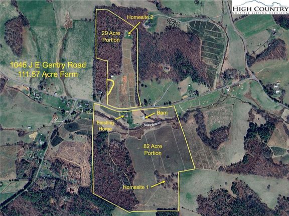 Steeped in more than two centuries of mountain heritage, this historic 111-acre Ashe County farm is a living story of North Carolina’s High Country. Once part of the early agricultural backbone of the region, the farm has been lovingly preserved under a conservation easement that ensures its pastoral landscape and legacy will remain unspoiled for generations to come. Rolling meadows, mature woodlands, and Silas Branch Creek weave together across the property, forming a setting of remarkable peace and permanence. The renovated 1,542-square-foot farmhouse offers two bedrooms, two baths, and a partially finished walk-out basement with a second kitchen and bath. Exposed beams, wood floors, and a brick fireplace echo the warmth of an earlier era. At the same time, an updated kitchen with stainless steel appliances and a sun-filled sitting room provides every modern convenience. Outside, multiple porches and decks overlook the surrounding fields and distant ridges, inviting quiet mornings and long evenings in the open air. A true rarity, the property also includes Ashe County’s oldest standing barn — an 1821 saddle-notched structure listed in the U.S. National Register of Historic Places. Its hand-hewn timbers and weathered patina are a timeless reminder of the region’s agrarian roots, offering more than 2,600 square feet of covered farm use. Additional barns and outbuildings stand ready for equipment or livestock. The land itself offers exceptional variety: approximately 47 acres are currently leased for Christmas trees and landscape crops, while 37 wooded acres support a managed forestry plan. Long-established farm roads and fencing define access and boundaries throughout the property. A second well supplies water for livestock and future development, with easement allowances permitting two additional homesites. The ridge homesite, surrounded by century-old trees, offers sweeping 360-degree views of the mountains — a setting worthy of a new chapter in this farm’s story. Conveniently located less than fifteen minutes from West Jefferson, this farm’s proximity to the New River and Blue Ridge Parkway underscores its rare combination of accessibility and authenticity. For those who value heritage, stewardship, and the quiet continuity of rural life, this property offers an opportunity not just to own land, but to become its next guardian. Large, intact historic farms of this scale rarely reach the market. For the buyer who values authenticity, natural beauty, and the privilege of preservation, this farm offers the rarest gift — the chance to own not only a remarkable piece of land, but a lasting legacy.
