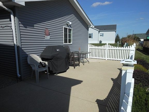 Fabulous!! Over 2000 square feet of all drywalled home. Huge Oak Kitchen w/cabinets galore! Center island,pantry closet,eat-in area and pass through to the living room.Dining room and glass french doors leads to a den/office.. Huge master w/walk in closet and glamor bath w/whirlpool,separate shower and double sink.Back up gas generator . Siding to the ground. Patio that is fenced for dogs!Appliances stay (no w/d) 55+