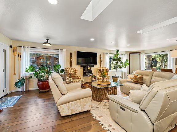 Nestled amidst the Sierra Nevada Mountains, this mountain modern home seamlessly integrates into the rugged beauty of its surroundings. Expansive windows invite the outside in, framing views of majestic mountains, dense forests, and crystal-clear skies. Step inside, and you'll find an interior that effortlessly marries form and function. The open-concept living space is bathed in natural light, thanks to strategically placed windows that offer views of the surrounding wilderness and lake tahoe., The design palette combines earthy tones with contemporary finishes, creating a warm and inviting atmosphere. The bedrooms all offer filtered views of lake tahoe and the surrounding forest. The bathrooms include spa-like amenities such as a steam shower and a soaker tub. The entertainment and relaxation continue outdoors, where expansive decks provide the perfect vantage point for taking in the breathtaking scenery. A hot tub, located off the master bedroom, is strategically positioned to capture the best views and invites residents to unwind under the stars. Situated just a leisurely 5-minute stroll from the house, the Skyland neighborhood's private beach becomes a tranquil oasis for residents. Accessible at a moment's notice, it offers a serene escape where one can unwind amidst the breathtaking views of the lake and surrounding mountains.
