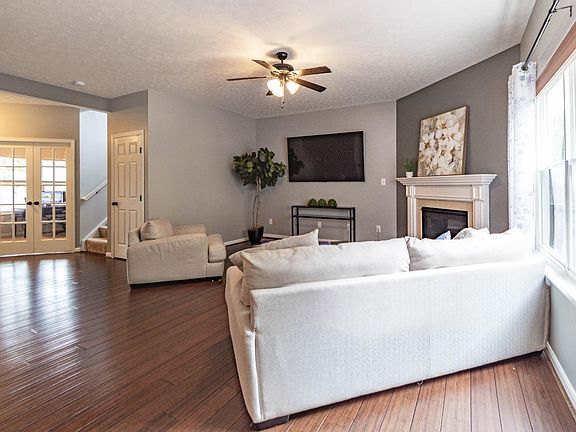 Welcome Home to Thornton Grove - 4 bed 3.5 bath + study! Plenty of space w/9 ft ceilings, vaulted loft/breakfast rm & Primary. Gorgeous open 1st Flr w/Gas FP, Island & Counter Bar, SS appliances '22-23, & Lg Breakfast Rm! Walk out to expansive deck w/wooded view & playset. 2nd Flr loft, HUGE Primary Ste w/WIC & 3 more bdrms. Entertain/relax in Finished LL w/family rm, wet bar w/custom stone & full bath! Low traffic, cul-de-sac street. HVAC 2021, Wtr Softr 2022. Pool community & trails