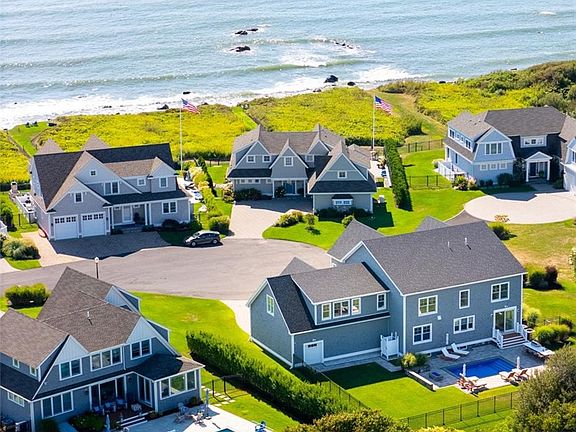 This ocean view home offers a relaxing retreat, thoughtfully designed for everyday living & effortless entertaining. The chef’s kitchen features Thermador range, hood, refrigerator & dishwasher–alongside quartz island & countertops, soft-close cabinetry, a Zephyr wine cooler, & a beverage fridge, flowing seamlessly into the living & dining spaces highlighted by soft, light Birch flooring, LED lighting & ocean views. The living room has a gas fireplace & surround sound tv, creating a warm & inviting atmosphere. The primary suite features a 26’ x 13’ bedroom area, spacious walk-in closet w/custom organizers & a spa-like bath w/ double sinks, quartz countertops & an extra-large walk-in glass shower w/bench & add’l rain head shower. 2 add’l bedrooms & baths, a laundry room w/Maytag washer & dryer, a wet bar, bonus room & sitting room complete the 2nd level. The expansive 3rd level is an open, flexible space-ideal for a home gym, office or creative studio. The landscaped grounds, designed for entertaining, centers around the saltwater inground pool, full kitchen w/sink, refrigerator & gas grill & is finished w/a stylish gas fire pit & outdoor shower. With irrigation system, ADT security system, & outdoor cameras, three-car garage w/ rear door, 4-zone HVAC system, 400-amp service, Generac generator, full-unfinished basement, & steel beam construction. Near popular Narragansett beaches, Pt. Judith, & fine coastal dining, this home embodies luxury living on RI’s beloved shoreline.