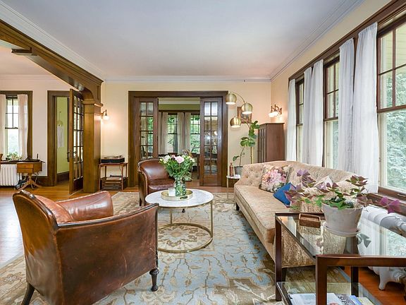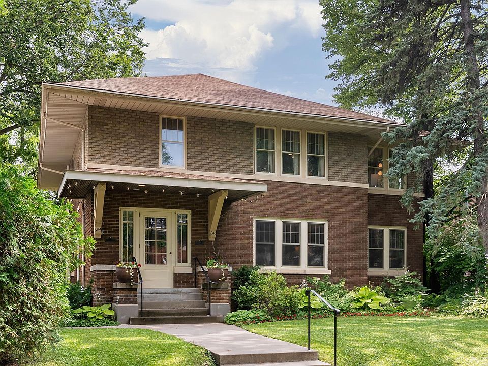 The pinnacle of Craftsman style, this brick beauty contains two spacious units. The highest quality materials – brick, oak, glass – were used expertly to make this a showcase of the period. Oak floors and massive arches, French doors, and windows overlooking well-tended gardens, this splendid home is also welcoming and comfortable. The main level unit includes four bedrooms, two bath, and large family room. Thoughtfully finished lower level, carrying Craftsman style throughout, makes the main level unit feel like a full single family home. Upper level has three beds one bath, and second story views of the pretty neighborhood and lush greenery. All maintenance and renovations were of very high quality, including kitchens in both units. Separate AC for each unit. Two car garage with giant storage area. Lower level workshop and 2 storage closets. Excellent opportunity for friends or family to share one home, or upper bracket rental. Walk to several schools, and enjoy the best of Grand.