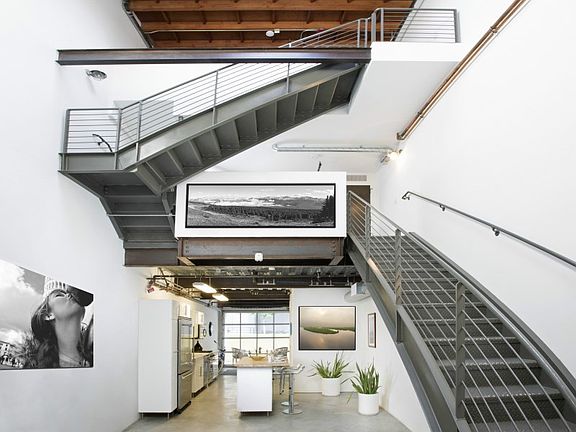 Centrally located to Silicon Beach, this Princeton Lofts live/work home is perfect for today's entrepreneur or lover of fine architecture. The open main floor basks in natural light and is ideal for team workspace, featuring soaring two-story ceilings, an industrial grade roll-up door for fresh coastal breezes, and durable polished concrete flooring. The large galley kitchen includes marble countertops, an island with seating and storage space, and stainless steel Viking Professional refrigerator and dishwasher. Upstairs, a large room functions wonderfully as a master bedroom or as a private office and includes tall wood ceilings and a large floor-to-ceiling window for natural light. The adjacent four-piece bathroom includes luxurious amenities such as tiled walls, dual vanity, and a marble countertop. The third level loft provides an additional workspace or conference room, or a perfect place to lounge after a long day. This Silicon Beach loft is a must see!