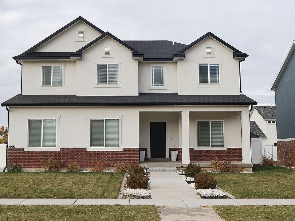 Beautiful corner lot, 2 story home in a quiet, well-kept neighborhood. Conveniently located minutes from Springville Rec Center, shopping, schools, parks and access to I-15. Features include beautiful laminate flooring throughout the main level, updated light fixtures, quartz counter tops, beautiful built-in electric fireplace, backyard patio awning, epoxy garage floors and more. This home shows very clean and has been well taken care of. Refrigerator, washer & dryer, couch, dining table, backyard play-set, outdoor furniture and shed all included in sale if buyer is interested. Modern style, comfort, and an excellent location - don't miss it!