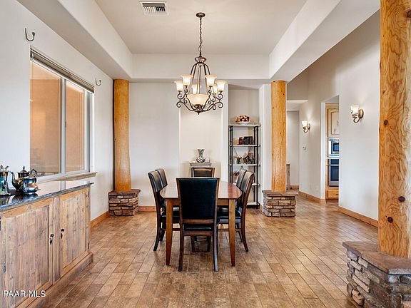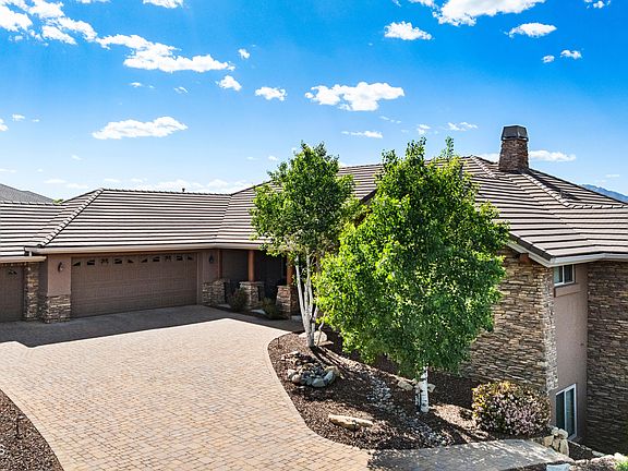 Magnificent Golf Course Home in Prescott Lakes- Unparalleled Views!Welcome to this exceptional 5-bedroom, 4.5-bath home with an office, nestled on a quiet cul-de-sac within the prestigious gated Estates community at Prescott Lakes. Ideally situated overlooking the 5th hole of the Hale Irwin-designed championship golf course, this home offers breathtaking views of Granite Mountain, the San Francisco Peaks, and the Dells.The expansive main level (approx. 3,100sf) provides true one-level living, featuring three spacious bedrooms--including a luxurious master suite with vaulted, cornice ceilings and 8-foot solid wood doors throughout. A well-appointed office is also located on the main level. The living areas are light-filled and generous, with 2 cozy gas fireplaces and abundance of
