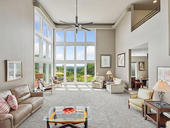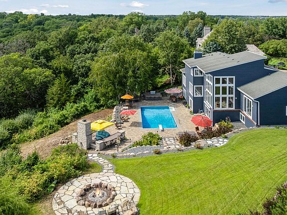 Situated high above the Minnesota River Valley in demand Hesse Farm, this soft contemporary offers a rare combination of privacy, space, and sweeping views—all just minutes from all your daily amenities. Set on 9.5+ acres, it’s a true in-town retreat where nature and comfort meet. From the moment you step inside, the home opens up with soaring ceilings and expansive windows that frame the valley in every direction. The two-story Great Room is a showstopper, flooded with natural light and anchored by floor-to-ceiling windows that capture the ever-changing scenery. The eat-in Kitchen is well-equipped with professional-grade appliances from Thermador, Electrolux, and Frigidaire, and offers extensive cabinetry for serious storage. A formal Dining Room and a welcoming Family Room make hosting friends and family easy and enjoyable. Nestled above the Kitchen is a lofted Office – bright and airy, this is a tranquil spot perfect for working from home. The spacious Primary Suite is tucked away on the main level, complete with a large walk-in closet featuring a custom organizer and full bath. Upstairs, you'll find two generous bedroom suites—each with its own three-quarter bath and excellent closet space. Downstairs, the walkout lower level was completely remodeled in 2020 and designed with entertaining in mind. It features a large Game Room, Wet Bar, Home Theater, glass-enclosed Wine Cellar, and even a dedicated Craft or Hobby Room. Two ¾ Bathrooms, a Guest Bedroom and large Exercise Room complete the lower level. Outside, the backyard is a destination all its own. Lounge by the heated saltwater pool, grill in the outdoor kitchen, or gather around the wood-burning fireplace in the outdoor family room. Professionally designed and landscaped, and surrounded by nature, it’s a place where you can watch eagles soar by day and fireworks light up the sky at night. Nestled along the Minnesota River Bluff LRT line, there are over 9 miles of trails to explore while taking in the incredible views. This is a one-of-a-kind setting with a home to match!