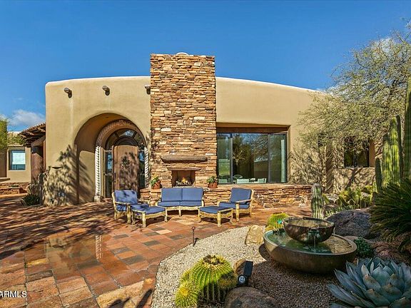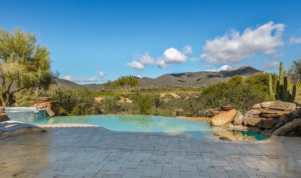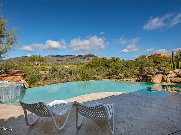 Stunning Desert Mountain estate with FULL GOLF MEMBERSHIP, fully remodeled 2023-2024 and offered furnished (art excluded). Designed by renowned architect Lee Hutchison, this 7,447 sq ft home sits on 1.7 acres across two lots with exceptional privacy, golf course adjacency and panoramic Continental Mountain views. Features include 4 bedrooms, 6 baths and 9 fireplaces. Resort-style outdoor living offers new travertine decking, resurfaced pool, spa, fire pit, Alfresco grill and multiple seating areas. Inside, the new gourmet kitchen includes quarter-sawn Plato cabinetry, Thermador appliances, Smeg espresso maker and quartzite counters. Great room has curved quartzite bar, wine cooler, 100'' TV and mountain views. Luxurious primary suite with fireplace, SDH bedding, quartzite bath and custom closet. Large guest casita with fireplace. Extensive mechanical updates: new HVAC (primary & casita), new tankless water heaters, new water service, new water softener, new security system, and more. Move-in ready perfection in Desert Mountain.