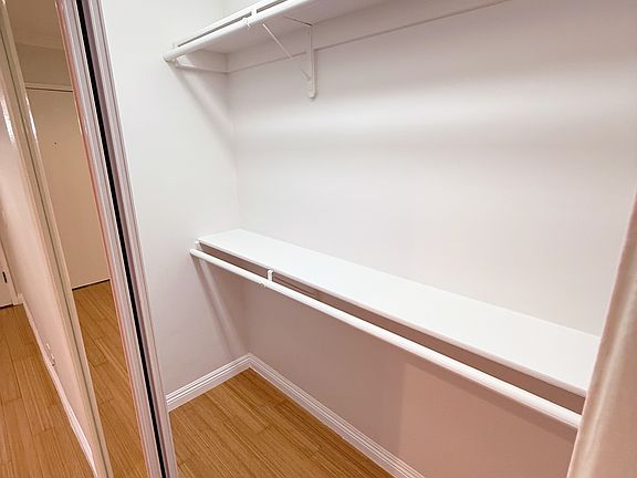 Bamboo wood flooringTravertine-tiled bathroomStainless steel appliancesRecessed lightingSpacious closet