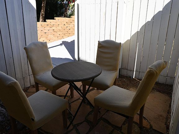 Fully furnished studio in Porter Ranch with a private entrance, conveniently located near the 405 and 118 freeways and a bus station. Situated in a safe and quiet, upscale neighborhood, it is just two miles from a shopping center, Northridge Mall, and Costco, and three miles from Walmart, Best Buy, and AMC. It is also very close to CSUN. A washer and dryer are located just outside this unit, which has a view of the fruit garden. This studio features a dedicated enclosed yard with a round table and four chairs. Inside, you'll find a queen-size bed, a large 55-inch smart TV, and a spacious refrigerator. The kitchen includes granite countertops with a full backsplash, a garbage disposal under the sink, and a large microwave with a hood. The stove has two burners, and a set of dishes, plates, glasses, pans, pots, and utensils is provided for convenient cooking. The full bathroom includes a bathtub, and the fan is equipped with a smart humidity sensor. The water-saving toilet also features a bidet. The studio is equipped with a dedicated energy-efficient mini-split system for cooling and heating, allowing tenants to set their preferred temperatures. Additionally, there's a ceiling fan with remote control for added comfort. The front door is a full-size glass door, and the studio has a large window for natural light. All lighting in the studio is dimmable and can be controlled through a phone app. A closet with two shelves and a mirrored sliding door provides ample storage. This unit is keyless, eliminating the need for physical keys. The owner covers the costs of electricity, high-speed internet, cable TV, Netflix, trash, gas, gardening, heating, and cooling. The owner covers the costs of electricity, high-speed internet, cable TV, Netflix, trash, gas, gardening, heating, and cooling.