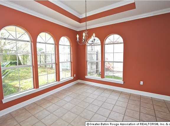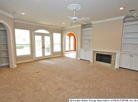 Not your typical Springlake design! Situated on a cul-de-sac, you notice how special this 3 BR/2BA home is from the front stoop with the brick entryway!! The different areas and entrances to hallways through arched openings, plus some arched windows, really creates a new look! The foyer and formal dining room have wood floors. The open LR/DR/Foyer are defined by columns and arched openings. The dining room has a recessed ceiling, stacked crown molding, and chair railing - very elegant! The living room has new, plush Frieze Carpet, surround sound speakers, fireplace with granite tile surround & built-ins on both sides, stacked crown,and a double door with side windows overlooking the gorgeous yard! The breakfast area is very nice and light with windows on two sides and the area is defined by the recessed ceiling and stacked crown molding. The kitchen and breakfast areas, as well as baths, all have ceramic tile floors. The kitchen is particularly nice with ceramic tile counters and backsplash, an island, flat cooktop, refrigerator that remains, and there are pot drawers and lots of cabinets and counter space!! The laundry area has cabinets as well as nice closet. The split floor plan has a lovely alcove entrance to the master bedroom, complete with a small closet on one side and accent shelving on the other. The spacious master bedroom has a recessed ceiling, stacked crown, view of yard, plus a door to the porch! The lovely master bath has his and her vanities, large separate shower, jetted tub and nice walk-in closet with shelving. The larger guest bedroom on the front of the house has a large window with accent and lots of shelving in the closet. The other bedroom has a small walk-in closet. The hall bath has a framed mirror and small linen cabinet. You will absolutely love the outside of this home. Not only do you have a nice, deep back porch that leads onto a additional large patio, but lots of landscaping and a fenced yard too! The home has a large 2 car garage and comes complete with a security system.