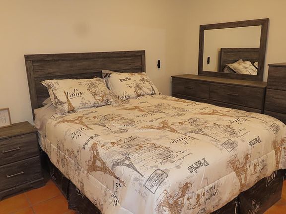 - Exterior features: 4k Smart 58' Tv, Barbecue, Chairs, Chest stand, Coffee Maker, Dishes, Garbage included in rent, Heating system: Forced Air, Heating system: Wall, Iron, Pans and Pots, Queen size bed, Stand with mirror, Tea Maker