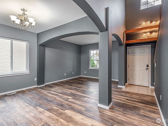 Explore this stunning 4 bed 2.5 bath home in the coveted community of Yelm Terra! Enter through the covered front porch to find newer LVP flooring & interior paint effortlessly blending traditional charm w/ modern design elements. The kitchen is the heart of the home showcasing newer SS gas range & fridge. Spacious open-concept layout provides the ideal setting for gatherings, allowing conversation to flow naturally between the family, dining & living room. Spending chilly PNW evenings cozied around your gas tiled fireplace w/ greek pillar style mantle. Step upstairs to find 3 sizable bedrooms & oversized primary suite revealing 5-piece ensuite bath w/ soaking tub & large walk-in closet. Located near restaurants, parks & easy drive to JBLM!
