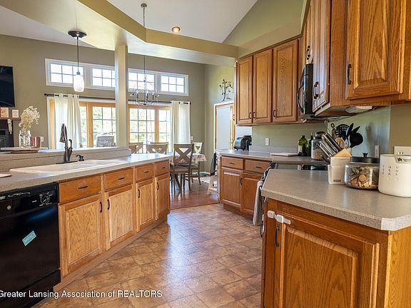 Welcome to 10464 Hankerd Road—where everyday comfort meets resort-style living. This 3-bedroom, 3.5-bath home rests on just under half an acre with direct frontage on Hankerd Hills Golf Course, offering peaceful views and a location that's second to none. You'll love being less than a mile from the clubhouse and restaurant, while also being perfectly positioned between Pleasant and Batteese Lakes for endless summer fun. Inside, the open floor plan showcases soaring cathedral ceilings and oversized windows that fill the space with natural light. The thoughtfully designed kitchen flows seamlessly into the dining and living areas, creating the perfect backdrop for both daily living and entertaining. The main-floor primary suite offers convenience and privacy, complemented by generous secondary bedrooms and first-floor laundry. Step outside through French doors to your private backyard oasis. Enjoy a large deck with built-in seating, a covered patio, and a fully fenced yard overlooking the golf course. The lower level expands your possibilities with a secondary living area, and room to finish to your liking. Additional highlights include a 2-car attached garage, underground sprinklers in the front and back, and a well-maintained fenced yard. Best of all, this home offers an assumable mortgage, presenting an excellent opportunity for qualified buyers to secure favorable terms. Whether you're hosting summer barbecues, sipping morning coffee on the covered patio, or simply enjoying the view, this home is designed for both relaxation and recreation. Golf, lakes, space, and charmthis property truly has it all. Don't miss your chance to make it yours!
