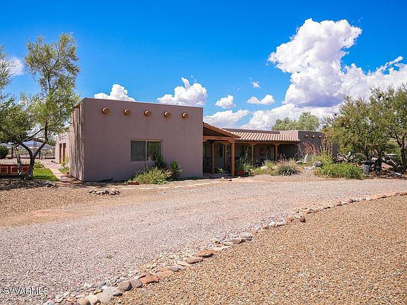 Welcome to your dream retreat in Cornville! This stunning 4-bedroom, 4-bathroom home sits on 2 serene acres with sweeping views of Mingus Mountain and glowing Arizona sunsets. Featuring two spacious master suites, it's ideal for multi-generational living or Airbnb potential. Walk into a spacious living room, a private dining room, and a stunning Spanish tiled kitchen with a new dishwasher. Outside, enjoy approximately one acre of flat, fenced riding space with a large metal shade structure, perfect for horses or future livestock. An oversized driveway and designated space for RV parking add functionality, while the tranquil waterfall pond creates a peaceful oasis in your own backyard. This property blends beauty and rural charm in one of the Verde Valley's most picturesque settings.