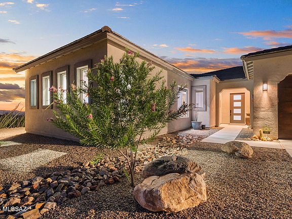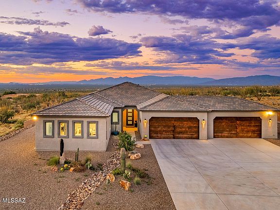 VIEWS VIEWS VIEWS & UPGRADES GALORE! Fall-in-love with this EXTRAVAGANT 3BED/4BATH/4CAR home with POOL & SPA that offers the most magnificent panoramic views of Tucson's Catalina & Rincon mountain landscapes, as well as the surrounding natural desert & Tucson's city night lights! Sitting on 4.188 acres & located against the Coronado National Forest, this home allows for maximum privacy with zero noise pollution & the freshest air quality you can get! Inside you'll find beautiful porcelain tile flooring & 10ft ceilings throughout. Full home automation for lights, thermostat, appliances, window coverings, etc. Stereo speakers can be found in the office, patio & primary bedroom & surround sound speakers in great room. The great room is bright, spacious & showcases a beautiful 48'' Heat & Glo linear gas Fireplace with new tile work! The Gourmet kitchen boasts a large granite island with limestone siding, quartz countertops, top-of-the-line Bosch refrigerator, Bosch dishwasher, Bosch induction cooktop, huge walk-in pantry with upgraded shelving, beautiful white soft-close cabinetry, a large single-basin Blanco composite sink, under-cabinet lighting & beautiful tile backsplash. Split-bedroom plan ensures extra privacy in primary bedroom. Owner's ensuite features large walk-in shower with granite stone seat & tile surrounds, ceiling heat lamp for drying off, enlarged granite bathroom countertop with dual vanity, Toto Bidet toilet, and huge walk-in closet with upgraded shelving! Your backyard paradise awaits! The 16 ft French sliding doors & extended porcelain tile to patio allows for that desirable indoor/outdoor living flow with misters when needed! Patio flooring is heated and gas taps are available for added outdoor heating. Travertine pavers & pool deck are lit with landscape accent lighting. The pool/spa is heated & includes QuikPure3 ozone sanitizer & Pentair pool equipment. This backyard oasis also features an outdoor kitchen with a flat top griddle, granite countertops, & unique sparkle black stack-stone siding all covered by a gorgeous pergola structure with light, ceiling fan and misters! In addition to this amazing home, you have a spacious 4-car garage for the toy enthusiasts and the whole house water filtration system & salt-free water softener provides great clean water throughout. Located in the desirable A+ Vail School district & just 15 minutes to I-10. With updates galore, you can't build this home for this price today. Don't miss out on this luxury gem!