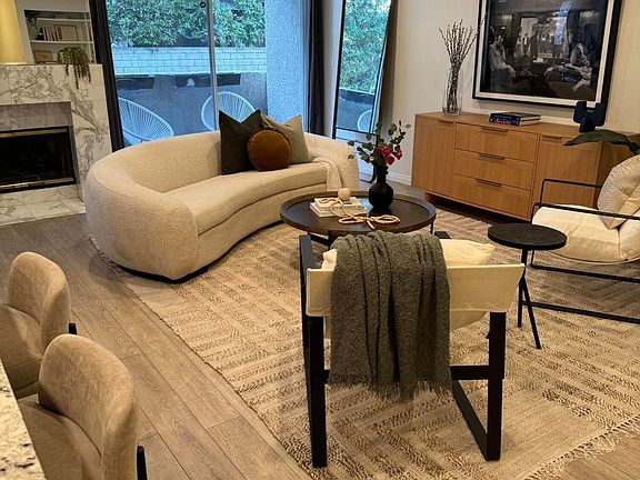 Fabulous location with close proximity to Century City, Beverly Hills and West L.A. Beautifully updated and spacious 1 bedroom + 1 1/2 bathroom condo approximately 1350 square feet is ready to move in! Open floor plan with high ceilings. Neutral wood like floors, freshly painted throughout. Marble front fireplace in living room. Separate dining room area. Gourmet galley kitchen with white and grey granite counter tops. French stainless steel fridge included. Plenty of cabinetry and storage. Granite counter extends to add bar stools for additional casual seating. Large living room with built in wall unit and desk on side wall. Plenty of recessed lights! Primary bedroom includes modern ceiling fan with light kit, walk in closet with organizing system, and en suite spacious bathroom. Dual sinks, large tub/shower. Additional closet for storage or clothes. Separate guest bathroom too. Bathrooms have newer tile floors. Balcony off living room. Stackable washer/dryer area with cabinetry. Newer A/C and furnace. Pride of ownership throughout. Location away from main street. Security building includes modern designed lobby, elevator and electronic gated parking. 2 assigned tandem spaces for this unit. HOA dues include Earthquake insurance on building. Pool and Spa on premises. This is a security building with remote access garage gate. A wonderful opportunity to own in this area. Priced lowest per square foot for the area too.