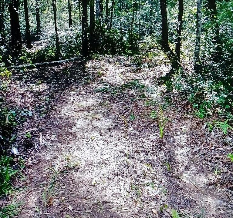 Paved roadPrivate wooded propertyBeginnings of a driveway