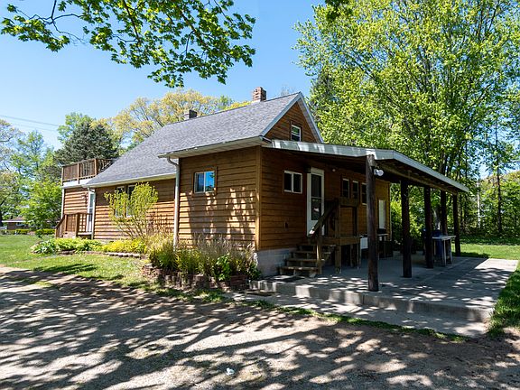Discover the endless possibilities with this charming farmhouse on nearly 7 acres, offering partial views of Lake Chapin. This 3-bedroom, 3-bathroom home is a canvas for your creativity, perfect for creating a tranquil Farmhouse homestead or a investment opportunity. The property boasts expansive land with three grazing fields, a barn, and a unique ''log and bottle'' wood shed, providing ample space for recreational activities or hobby farming. There is an RV electric hookup and plenty of room for watercraft and grown-up toys. The surrounding acres of wooded areas offer serene privacy and a natural landscape for enjoyment and recreation. Inside the home, the main floor features a versatile hotel-style ensuite with private entrance, previously utilized as an Airbnb studio. This space offer flexible use as a primary bedroom or guest quarters. The main level also includes a second bedroom, a comfortable living room, a dining area, a kitchen, and a mudroom. The upper level is a dedicated ensuite bedroom, bathroom a large walk-in closet, and a rooftop balcony that offers views of Lake Chapin. Conveniently located just minutes from lake access, downtown Berrien Springs, and Andrews University, this property combines the benefits of nearby amenities with the peace and tranquility of expansive acreage. Explore the charm and potential of this unique farmhouse, where modern living possibilities abound amidst rustic beauty.