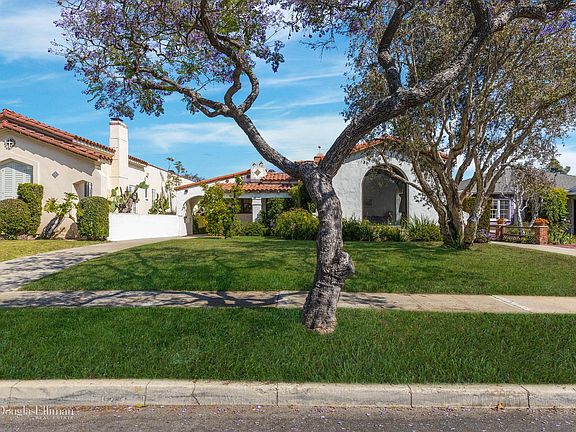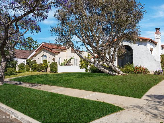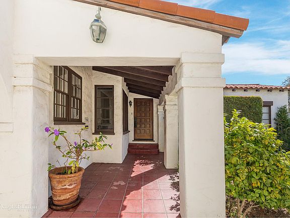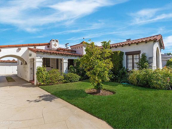 Unspoiled Santa Barbara Spanish 3 bed/1.75 bath with incredible charm & character throughout. Located on prime mid-block lot with Century City view potential. Covered front porch opens to formal entry with coat closet. Impressive step down living room with stunning wood beamed vaulted ceiling & large picture window overlooking front yard landscape. Large formal dining room w/ soffit ceiling opens to sun-filled kitchen w/ tiled countertops, walk-in pantry & inviting breakfast room. Laundry room w/ storage cabinets opens to relaxing back deck covered with veranda and spacious grassy backyard. Master bedroom with coved ceiling overlooks backyard w/ french door access to backyard. 3rd bedroom w/ attached 3/4 bath. Full bath in hallway with authentic tile finishes and separate bath & shower. Additional features include hardwood flooring throughout, central ac/heat, original period details including doors, hardware & fixtures. Porte Cochere & detached garage. Fairburn Elementary.