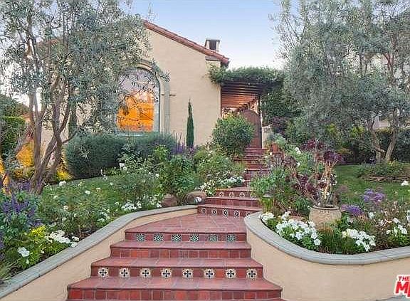 Set majestically above the road and through a magical courtyard entryway, this very private, emotional Spanish home has been painstakingly updated with top of the line finishes while retaining the beauty and essence of the original architecture. Despite its overwhelming vintage character, this home has a sensible floor plan that lives like today with three bedrooms together upstairs and one down. Original beamed ceilings in the large step down living room with fireplace. Separate family room. Formal dining room. Kitchen with separate breakfast area. Expansive size master suite overlooking the gorgeous private gardens. Stunning original Malibu tiles and hand painted tiles in bathrooms. This unusually large parcel features and outdoor kitchen with vast space for entertaining, a lovely garden including outdoor fireplace area and treetop views. There's even a separate guest room/office. The lower garden level is a kids' paradise with areas for play and sports equipment. Room for a pool.