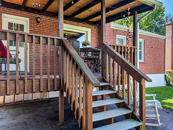 This mostly all brick home with single detached garage located in the Pattonville School District could be all yours. This home has wood floors, interior is freshly painted, with newer windows, newer roof, newer hot water heater, 6 panel doors, updated bathroom and the kitchen has lots of storage space featuring 42" cabinetry with black appliance package that includes; gas range, microwave, new dishwasher and newer side by side with lower freezer drawer refrigerator with ceramic tile flooring. This home is located on a level fenced lot with a covered deck with steps leading to the detached garage. Located close to shopping, entertainment, highway access and walking distance from public transportation.