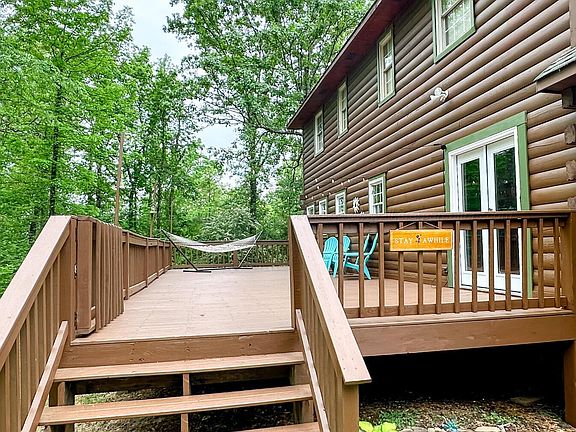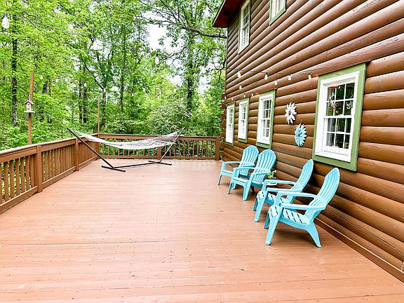 Welcome to your dream retreat--an authentic 2,800 square foot log cabin nestled on 11 serene, wooded acres complete with a tranquil pond and year-round creek. This 4-bedroom, 3-bath home offers the perfect blend of rustic charm and modern convenience, ideal for full-time living, or a family getaway. From the moment you step onto the covered front porch, you'll feel the warmth and character of this custom log home. Inside, the open-concept living space features soaring vaulted ceilings, exposed log beams, and a stone fireplace that serves as the cozy heart of the home. The kitchen is both functional and inviting, with solid wood cabinetry and stainless steel appliances. The open concept makes this home perfect for entertaining.