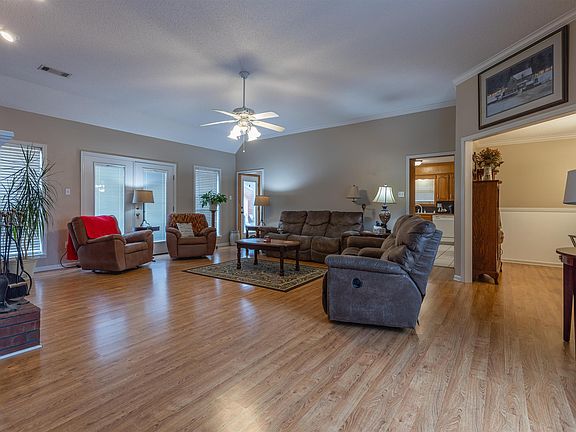 3 bedroom 2 bath home with bonus room, nice living area with laminate flooring and wood burning fireplace, nice eat-in kitchen with oak cabinets, island with smooth top cooktop, wall oven, pantry, separate dining room, crown molding, large primary bedroom, jetted tub and separate stand-up shower, good closet space, french doors leading out to the back patio, bonus room entry has access from the garage, 20x24 shop and a12x24 barn. All this sitting on 2.57 acres. Come see this one today!!