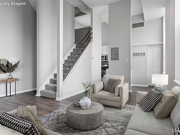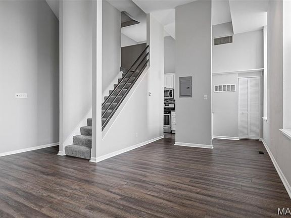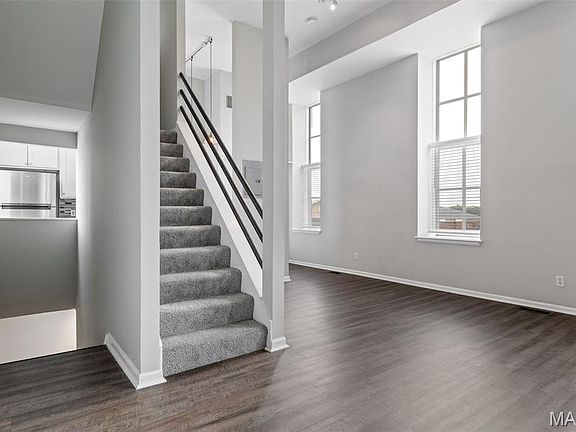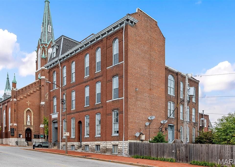 Improved price! Remarkable updated townhome unit just steps away from the historic Soulard Market and the restaurants and shops that make the LaSalle neighborhood shine! This move-in ready 2 bedroom 1 bath unit features soaring windows that flood the unit with natural light & provide striking views of the St. Louis Arch & Anheuser-Busch Brewery. The open floorplan main level features a great room/dining room with 13+ foot ceilings & luxury vinyl flooring. The well-appointed kitchen offers stainless appliances, granite counters & glass mosaic backsplash. Upstairs, the primary suite features soaring ceilings, jaw dropping windows & a carpeted loft--perfect for office, sitting room or workout space. A second bedroom & full bath complete the floorplan. With its ample closets, basement storage & laundry, the sleek unit offers style & convenience. Outside the unit, a fenced, landscaped courtyard flanks the picturesque pool, with secure, assigned parking lot nearby. Don't miss this outstanding opportunity!