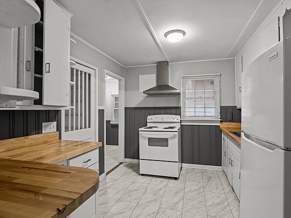 Original hardwood floorsCeiling fansButcher block countertopsUpdated light fixturesFresh neutral paintClassic chair railing