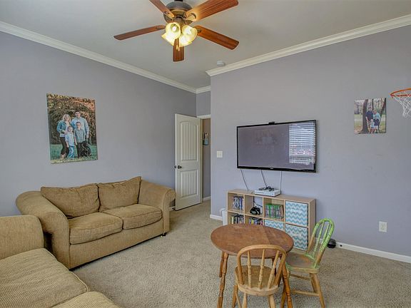 Gorgeous 4 Bed 2 Bath home with beautiful curb appeal, nestled on almost ½ acre lot. Spacious living area with tray ceiling, fireplace, and stunning wood floors that carry over to the formal dining area. The kitchen is a dream with granite countertops, breakfast bar, and stainless steel appliances. Large utility room with mud bench and lots of storage. Primary bath features double sinks, a soaking tub, and separate shower. Reserved items: tv mounts and security camera system.