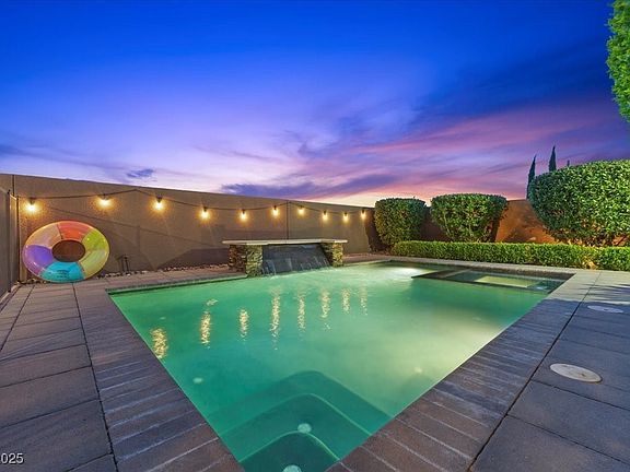 Welcome to your private sanctuary in Summerlin’s gated Cielo community. Perfectly positioned on the largest lot, this 4-bedroom, 3,142 sq. ft. home offers sweeping Las Vegas Strip & mountain views right from the primary balcony. Over $150K in upgrades create effortless luxury—new LVP flooring, a reimagined living room w/ custom fireplace & built-ins, a chef’s kitchen with quartz counters, an extended island, & premium appliances. Upstairs, a spacious loft invites relaxation; downstairs, a flexible den easily becomes a bedroom. Outside, an entertainer’s dream awaits: pool, spa, firepit, covered seating area w/ built-in Saber BBQ, & open yard space. Additional features include a custom staircase, plantation shutters, a 3-car garage with EV charger, and a central vac. Tucked away on a cul-de-sac, minutes from Bishop Gorman, Mesa Park, Downtown Summerlin, and just 11 miles from the Strip. Wake up to iconic views, sip coffee beneath cherry blossoms, and savor life by the pool—this is home.