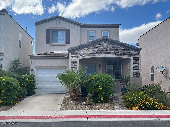 Popular South Valley Location. Near Costco, M Resort, Freeways, shopping and medical centers. Two story, two bedrooms, 2 1/2 bathrooms and one car garage. Modern design. Well kept. Neutral colors. Front living room. Bambo laminate flooring. Dining room. Kitchen with breakfast bar, granite countertops, upgraded cabinets, stainless steel appliances. Upgraded kitchen sink and faucet. Two spacious bedrooms. Carpet flooring upstairs. Master bathroom with double sink. Walkin closet. Upgraded washer and dryer. Inviting front landscaping. Secluded back yard. Community has swimming pool and a playground. This home has all that you need. Must see.