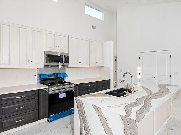 Gated circular drivewayDramatic waterfall islandGourmet kitchenSerene retreatLuxurious ensuite bathSleek white wallsRichly veined stone