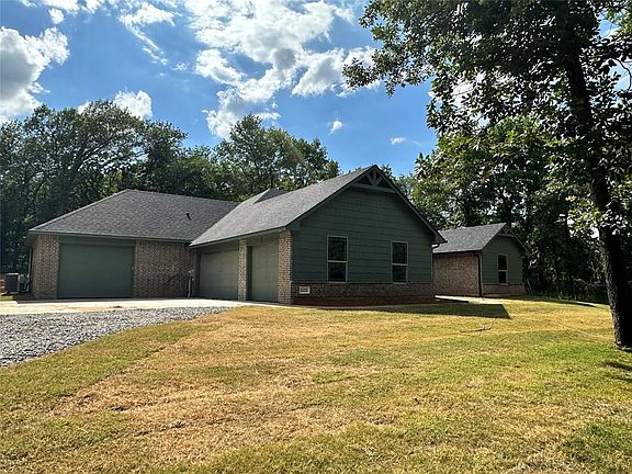 Home is move in ready! **Seller is offering $5,000 in incentive dollars for you to use towards upgrades, closing costs or even a rate buy down!** Get ready to fall in love with this exhilarating new home in the coveted Preakness Trails additionin McLoud! This 4 bed, 3 bath, 2170 sq ft beauty is ready to exceed every expectation. Sitting on 2 lots and 4 acres (+/-)of land, surrounded by beautiful trees, this home offers both luxury and space—the perfect retreat for those craving a life of comfort and adventure. Step into the dream kitchen, where granite countertops, sleek stainless steel appliances, a space-saving microwave, and a whisper-quiet, sound-insulated dishwasher make cooking an absolute joy. The open layout flows seamlessly, offering the perfect blend of elegance and functionality. The owner's suite is a true escape, featuring a serene bay window sitting area, a huge walk-in closet, and a master shower that invites you to unwind in style. Every inch of this home is designed with you in mind! Car enthusiasts, rejoice! The triple car garage is just the beginning. This property also boasts an extra deep, drive-thru 4th car garage with towering 10' x 8' overhead doors at both the front and back, providing endless possibilities for your vehicles, toys, or workshop. This home is a masterpiece in the making, and it's ready to inspire a life of pure enjoyment! Preakness Trails is calling—are you ready to answer?