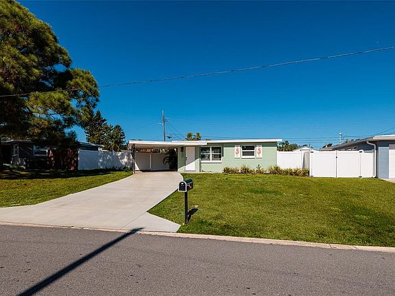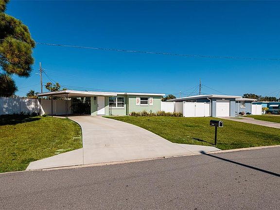 Welcome to your tropical paradise! This charming, updated 2-bedroom, 1-bathroom solid block home with a carport is a true gem. The property boasts expansive front and back yards, an interior laundry room, and double-pane windows with hurricane panels, all in a non-flood zone for added peace of mind. The well-maintained, fully furnished home features stunning terrazzo flooring throughout. The kitchen and bathroom have been updated with modern cabinets and vanities. Enjoy the comfort of the 2023 Mini-Split AC/Heat systems and the energy efficiency of the 2021 tankless water heater. The property also includes a new washer and dryer, new concrete driveway, and an updated private white vinyl fence that completes this amazing home. The street is equipped with speed bumps, ensuring a safer environment. Located just up the street from the picturesque Lake Seminole, you'll have access to outdoor amenities, dining, and shopping at Largo Mall. Indian Rocks Beach and Maderia Beach on the Gulf of Mexico are nearby for those perfect beach days. Additionally, a Home Depot and Lowe's are in the area for your convenience. Nature enthusiasts will appreciate the close proximity to the Florida Botanical Gardens and Walsingham Park for extensive nature walks. This is your opportunity to own a slice of tropical paradise. Don't miss out on making this dream home yours!