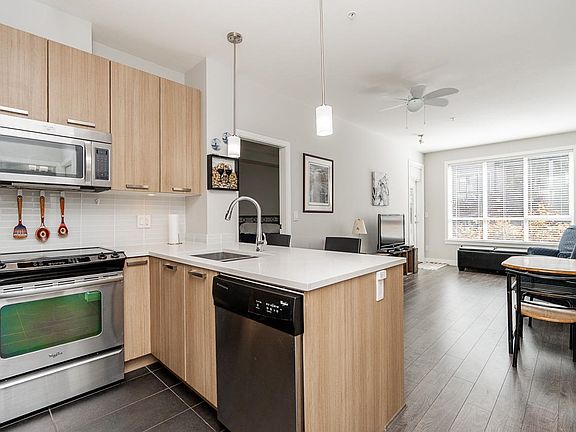 G3 - Great unit, great area, great price! This south facing unit has lots of light and the ideal floorplan with 2 bedrooms, each with their own bathrooms, on each side of the Livingroom. The building is only 11 years old and looks new. The covered patio overlooks the courtyard and you can walk to so many restaurants, shopping, bus or the rec center. 2 pets allowed. 2 parking stalls and 1 storage locker included. G3 provides fantastic amenities: guest suite, kids’ playroom, community room and a fully equipped gym. Well-run complex with proactive strata, an onsite caretaker and low fees. Call you realtor today, units like this in Guildford don't last long.