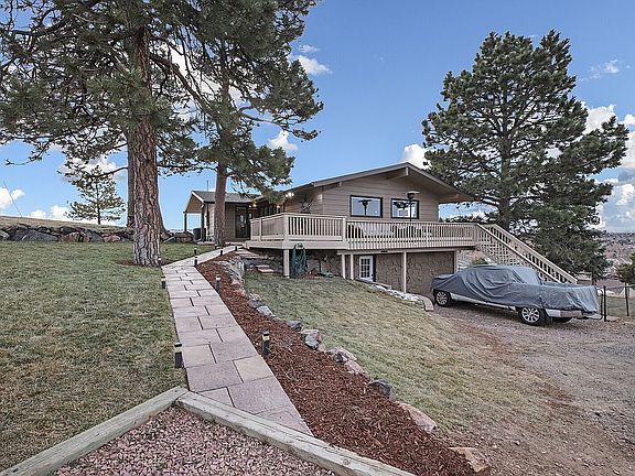 Enjoy outstanding views of Pikes Peak and the Front Range from the deck of this 4 bedroom, 2 1/2 bath home on 2.25 acres. Home is a mile from downtown Parker, making it an easy walk to restaurants or the weekly Farmers Market while still enjoying your own private space. Very open layout, with a great room flowing into an open kitchen with a wall of windows looking out to those incredible views. Perfect home office, with a separate entrance and half bath that can be closed off by the modern barn door. Walk out from the large master onto a patio with a hot tub shaded by large pine trees and several whispering aspens. For the car lovers, there is an extended heated two car garage with office, an additional 3 car garage, an 18 x 33 covered carport and circular driveway giving extensive parking. With no HOA, keep your toys at your home rather than paying storage fees. The home was remodeled with granite countertops throughout, stainless steel appliances, travertine tile, jetted tubs in both baths, fresh paint inside and out, dedicated 20 amp circuit to both garages, 50 gallon hot water heater last year, can lights, too much to list. All appliances stay, including washer and dryer. Option to purchase fully furnished, minus a few key items and personal belongings. Home is also located within city limits, and with proper water mitigation, is still eligible to be subdivided at 3 ¼ houses per acre. Great opportunity for investment, or to build a house for family members. On a terrific well, but if you don't like well and propane, Excel and Parker water/sewer are available to be ran from the curb. Or add some solar panels and be almost completely independent. This home is definitely not your average cookie cutter home, it's a bit unique. Reverse ranch setup, with bedrooms downstairs and great room and kitchen upstairs. Built on a hill so entrances on both levels. Willing to work with buyers agents, 2.5% offered. (We have an outstanding realtor in the family, so please don't call offering to list the home) New septic system, septic use permit in hand.